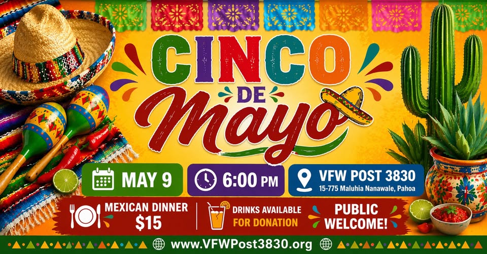 Chili and Bingo for a donation of $10.00, includes dinner of chili, rice, cornbread, coleslaw and a variety of desserts! You receive 2 cards complementary with dinner! All Welcome. Hope you can join us.